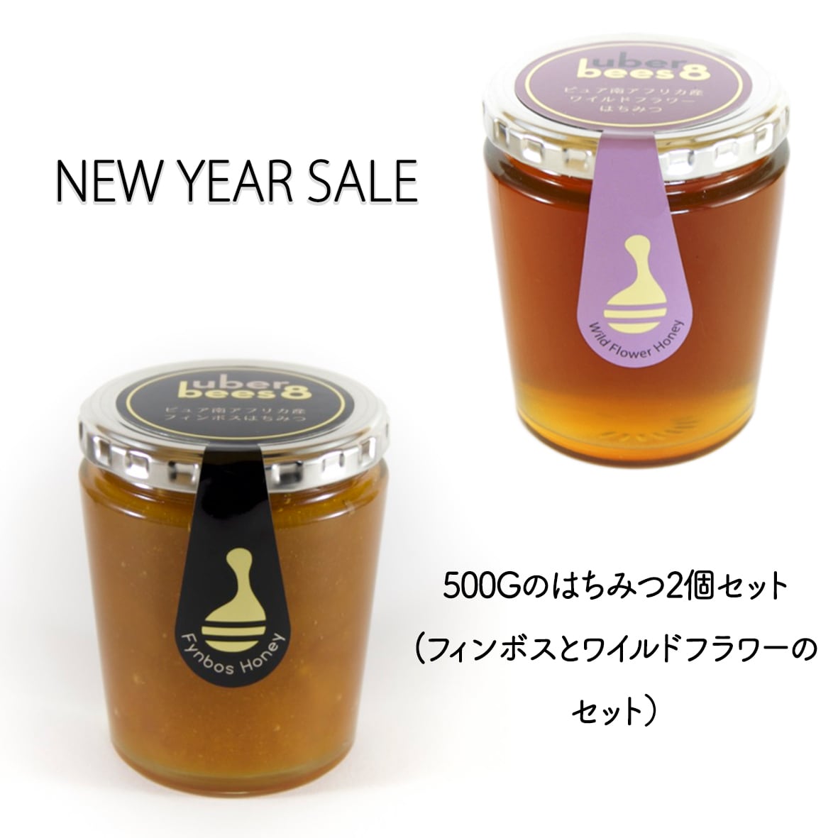 フィンボスはちみつ500gとワイルドフラワーはちみつ500gになります。